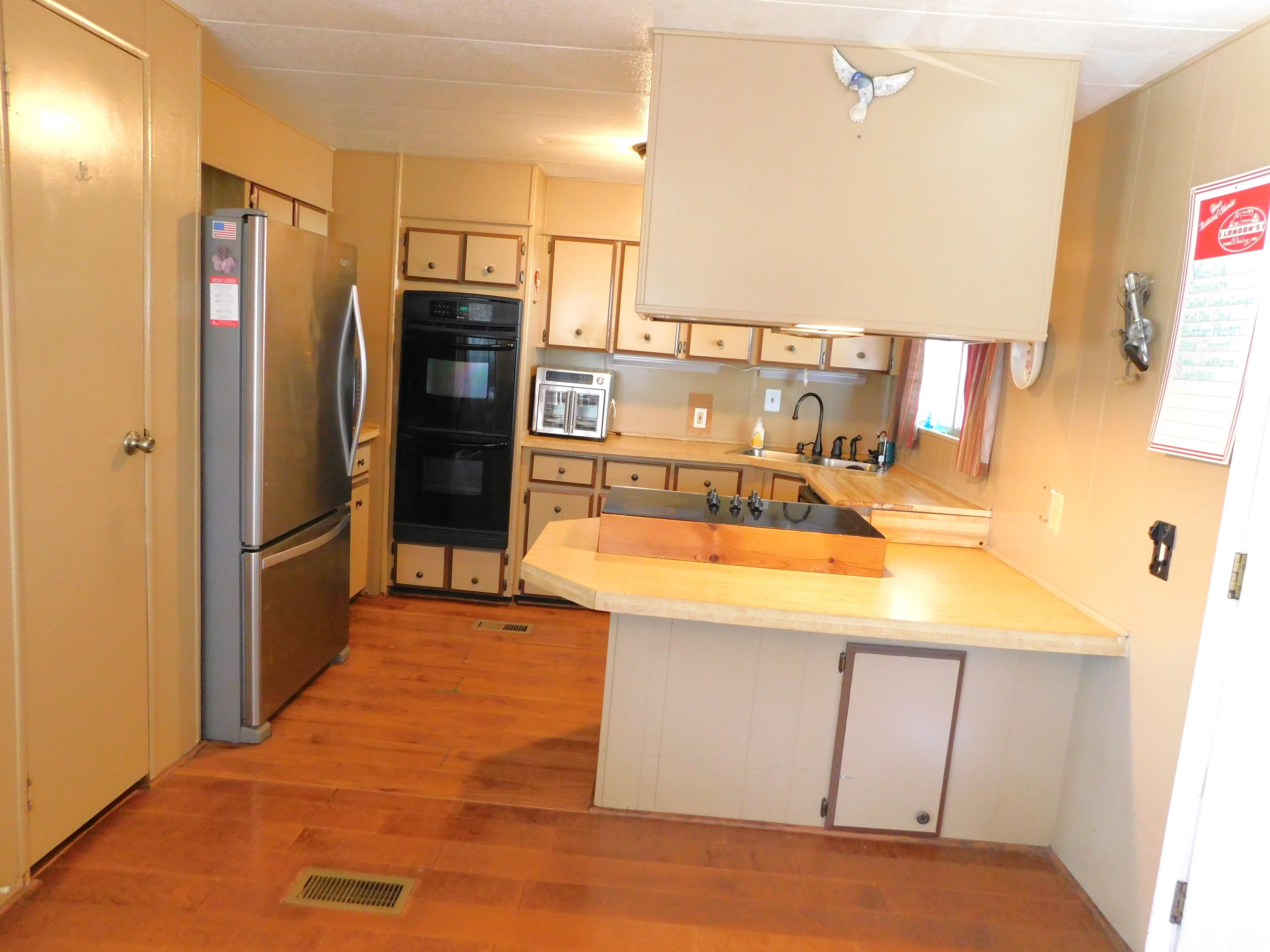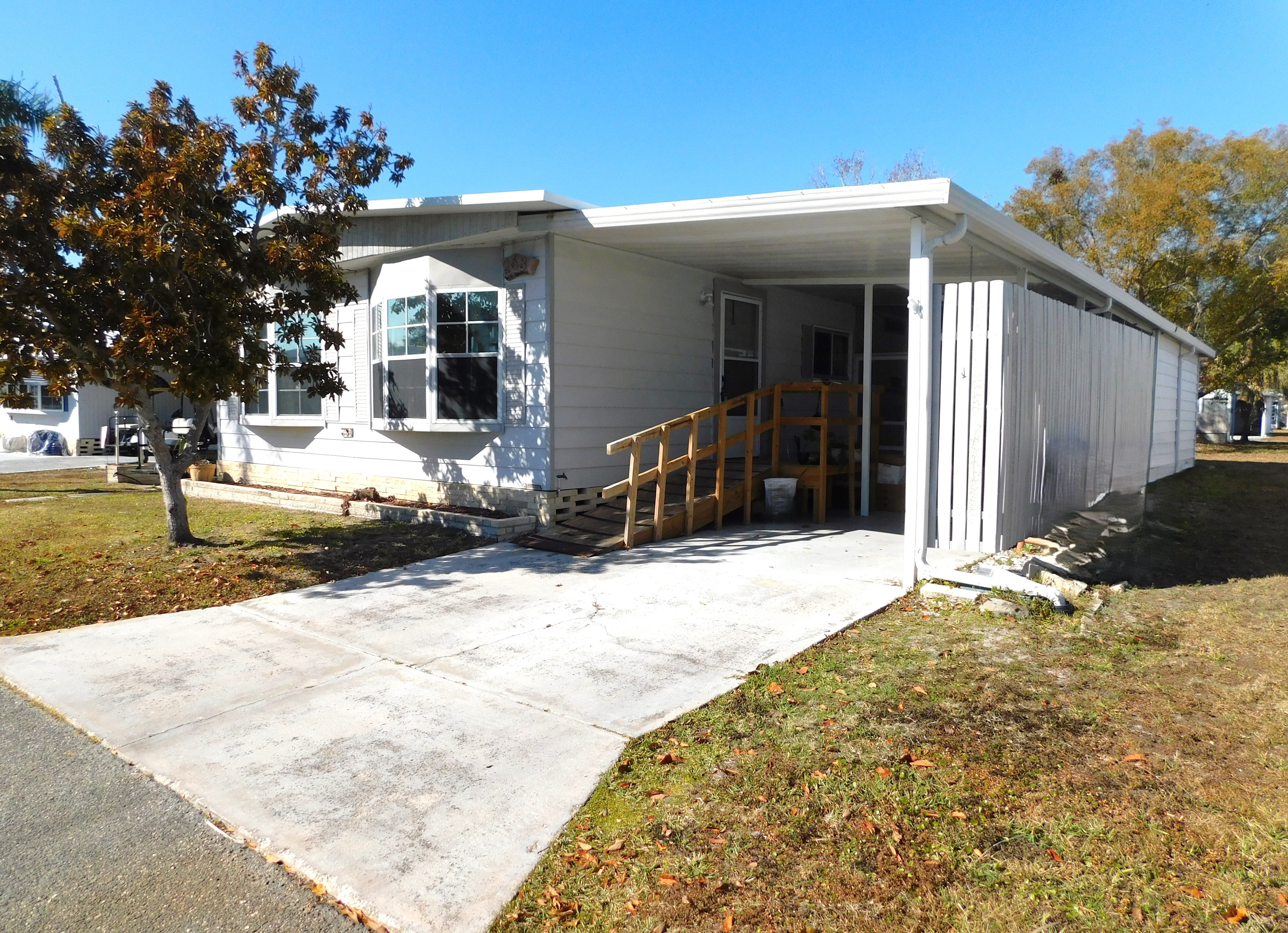 2 Bedroom, 2 Bath home, located in a 55+ community, offers 1173 square feet of semi-open concept living space with an incredibly large conjoined formal living area (12' x 12') and great room/den area (13' x 21') providing a total of 417 square feet of comfortable living space. Off the formal living area is the dining room accented by an attractive built-in archway on one side and a built in storage hutch with upper glass front doors on the other side. The kitchen is situated adjacent the dining room and offers plentiful countertop work space, and boasts counter mounted stove cook top, Kenmore double oven, and Whirlpool stainless steel refrigerator/freezer. Home is light and bright with double bay windows across the front of the home. Master bathroom boasts updates including a new vanity/sink, new toilet, and gorgeous roomy walk-in shower. Additional perks - new roof was installed within the past year, new water heater 3 years ago, new air conditioner less than 5 years ago, hurricane tie-downs updated in 2021, and new decorative front door. New laminate flooring is available (still new, still in boxes). New garbage disposal is available, just needs to be installed. Call to schedule an appointment to see how this spacious home fits your needs. Woodbrook Estates is an active, pet-friendly, 55+ adult community. The monthly lot rent includes land-lease and use of all amenities for $820. (No Additional Taxes.)